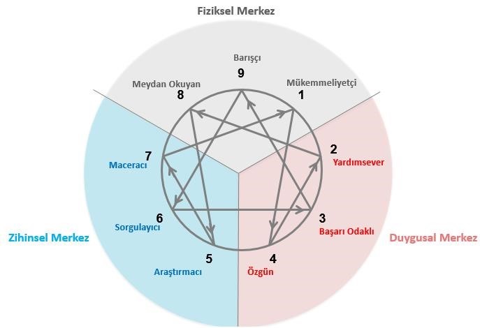 9 mizaç tipini merkezlere göre ayıracak olursak;